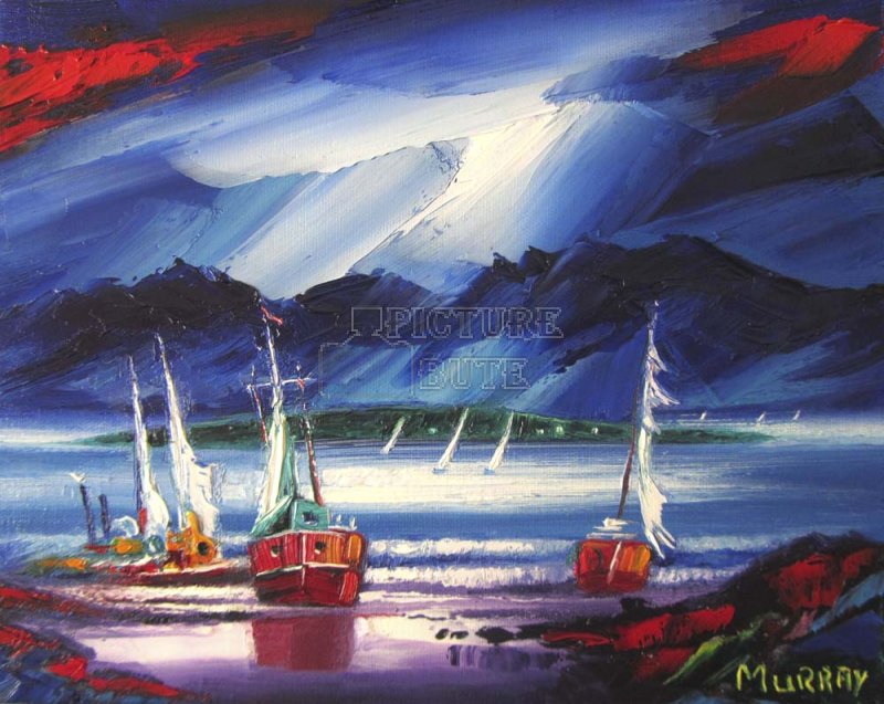Raymond Murray is a highly talented artist with a unique style. He was born and bred in Greenock and the old seafaring town is still an inspiration for some of his work. He now works from his studio on the Isle of Bute off the west coast of Scotland
