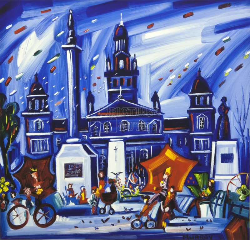 Giclee of print of a oil painting of the Bustling life in George Square, Glasgow, by Raymond Murray