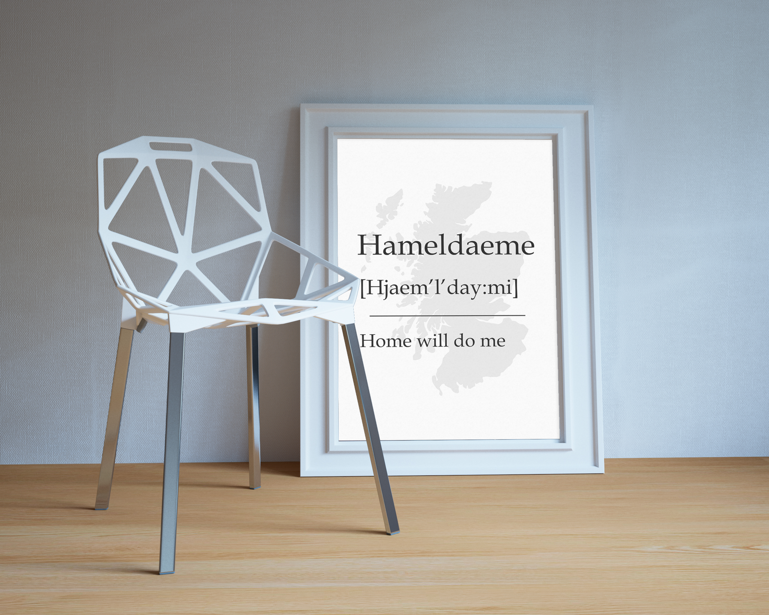 Hameldaeme Scottish UNFRAMED PRINT Fun Scots Scotland Slang Definition Room Wall Art