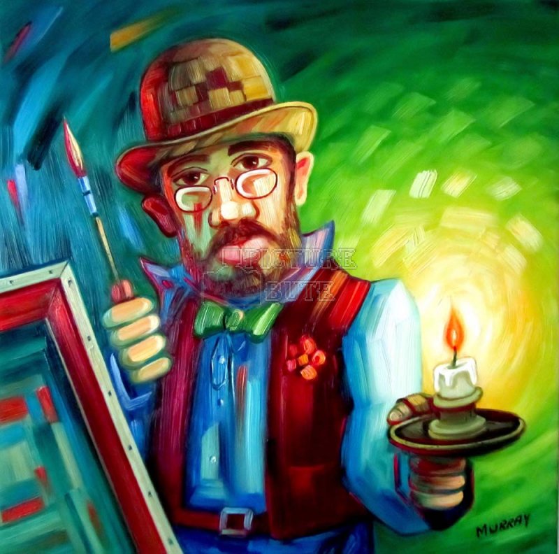 Giclee print of an oil painting by Raymond Murray depicting Toulouse Lautrec, painting by candle light.