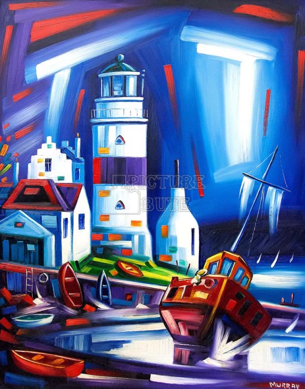 Raymond Murray is a highly talented artist with a unique style. He was born and bred in Greenock and the old seafaring town is still an inspiration for some of his work. He now works from his studio on the Isle of Bute off the west coast of Scotland